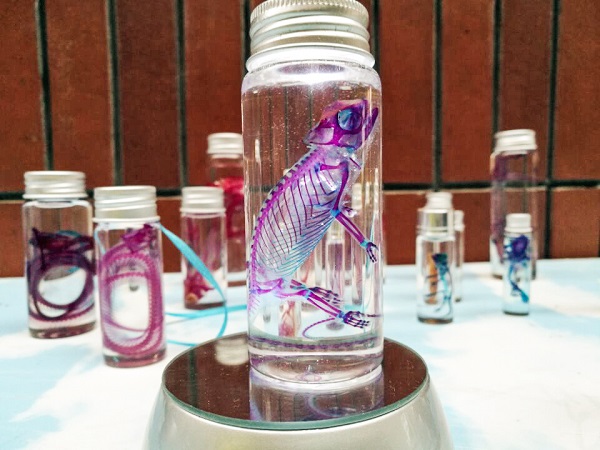 记者在现场看到,有栩栩如生的折纸作品,有超轻黏土捏造的动漫人物,也有视觉效果极强的透明染色骨骼标本……这些让人眼前一亮的手工艺品正是出自我校匠心手艺协会成员之手。