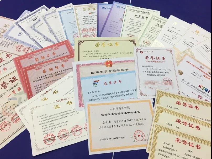在机电学院浓厚的科技创新氛围中,庄悦希也对科技创新产生了兴趣。翻着一摞厚厚的获奖证书,庄悦希不禁感叹,这些都是她三年多来科技创新生涯的见证者和记录者,每一张获奖证书的背后,都有一段属于她的宝贵记忆——