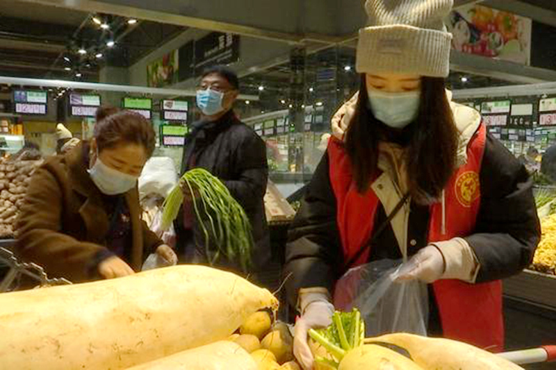 这个假期中,张露并没有老实的守在家中。她每天都要去超市采购白菜、大米、火腿肠和青椒……因为她的工作是为社区隔离人员买米送饭。