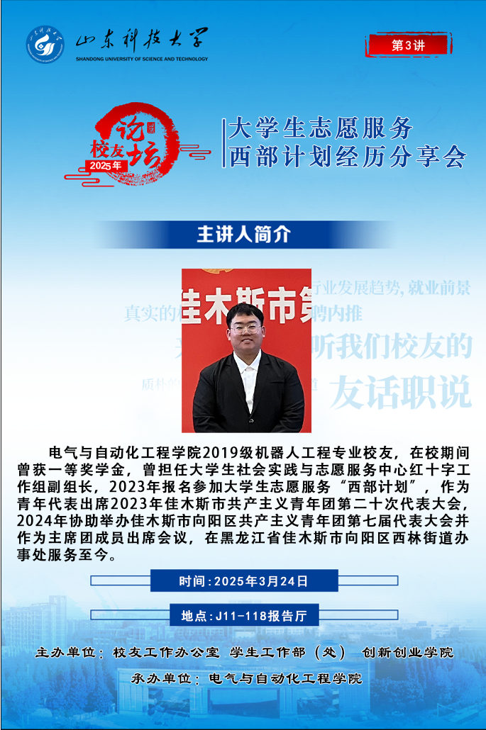 “校友论坛”2025年第3讲:大学生志愿服务西部计划经历分享会