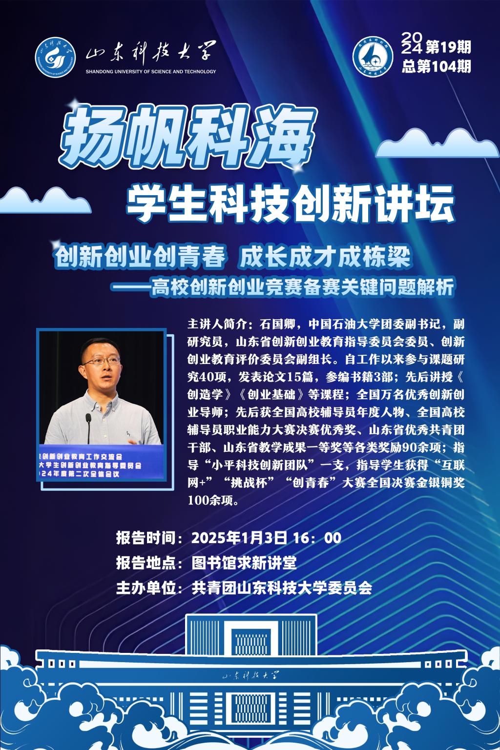 “扬帆科海”学生科技创新讲坛:创新创业创青春 成长成才成栋梁
