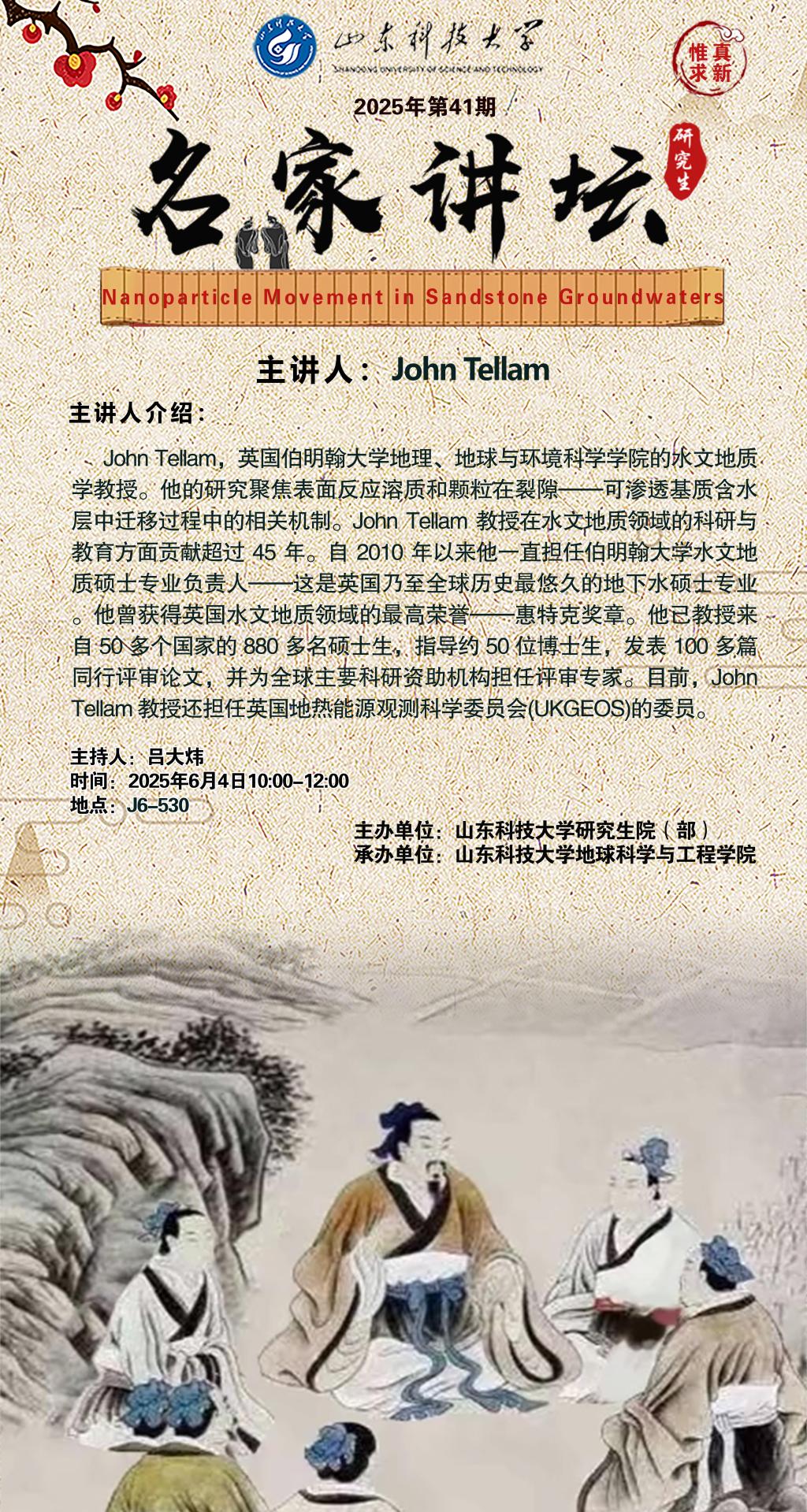 “名家讲坛”2025年第41期:Nanoparticle Movement in Sandstone Groundwaters(总1046期)