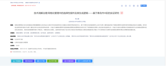 近日,九州在线马克思主义学院教师高士健在《西南大学学报(社会科学版)》发表题为“技术消解治理:网格化管理中的选择性报件及其生成逻辑——基于青岛市H区的实证研究”的文章。
